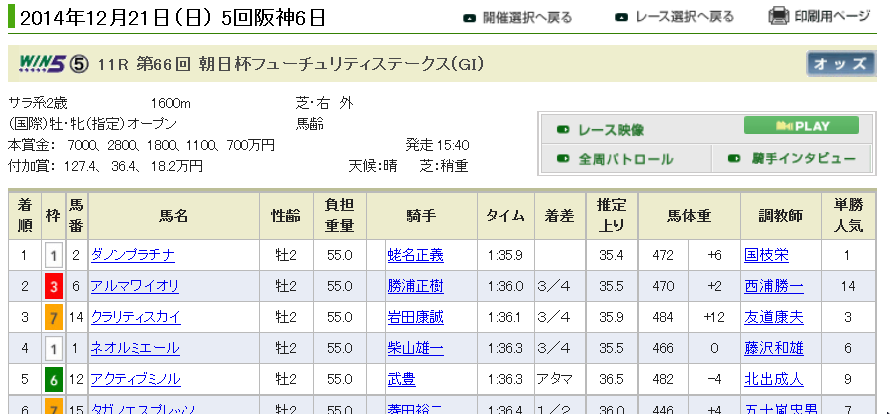 第66回 朝日杯フューチュリティS 勝ち馬投票券